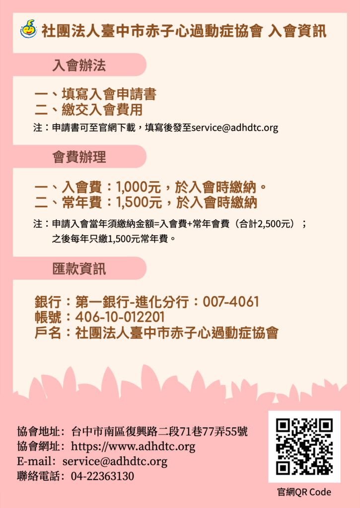 注:申請書可至官網下載,填寫後發至service@adhdtc.org